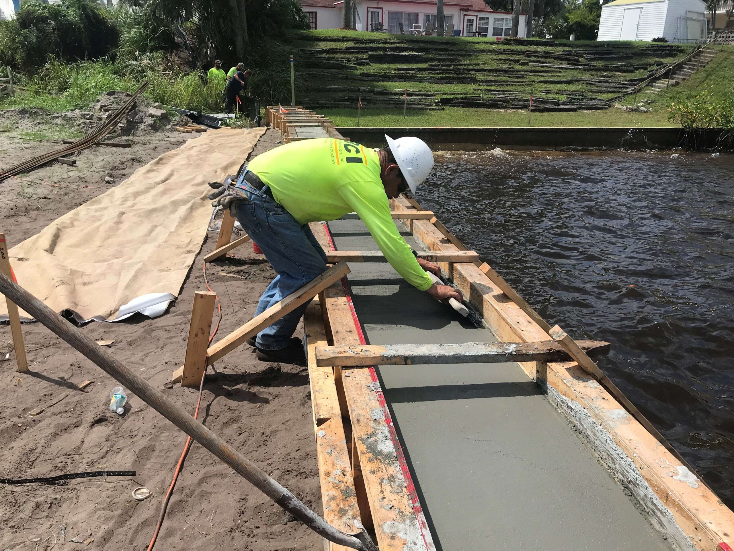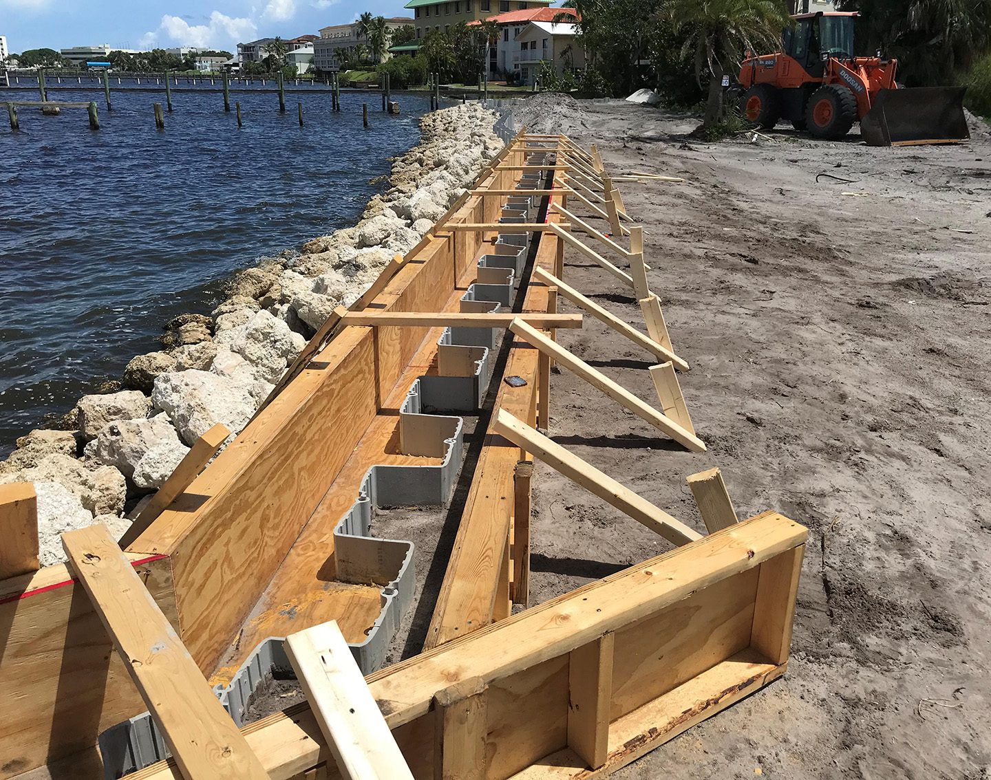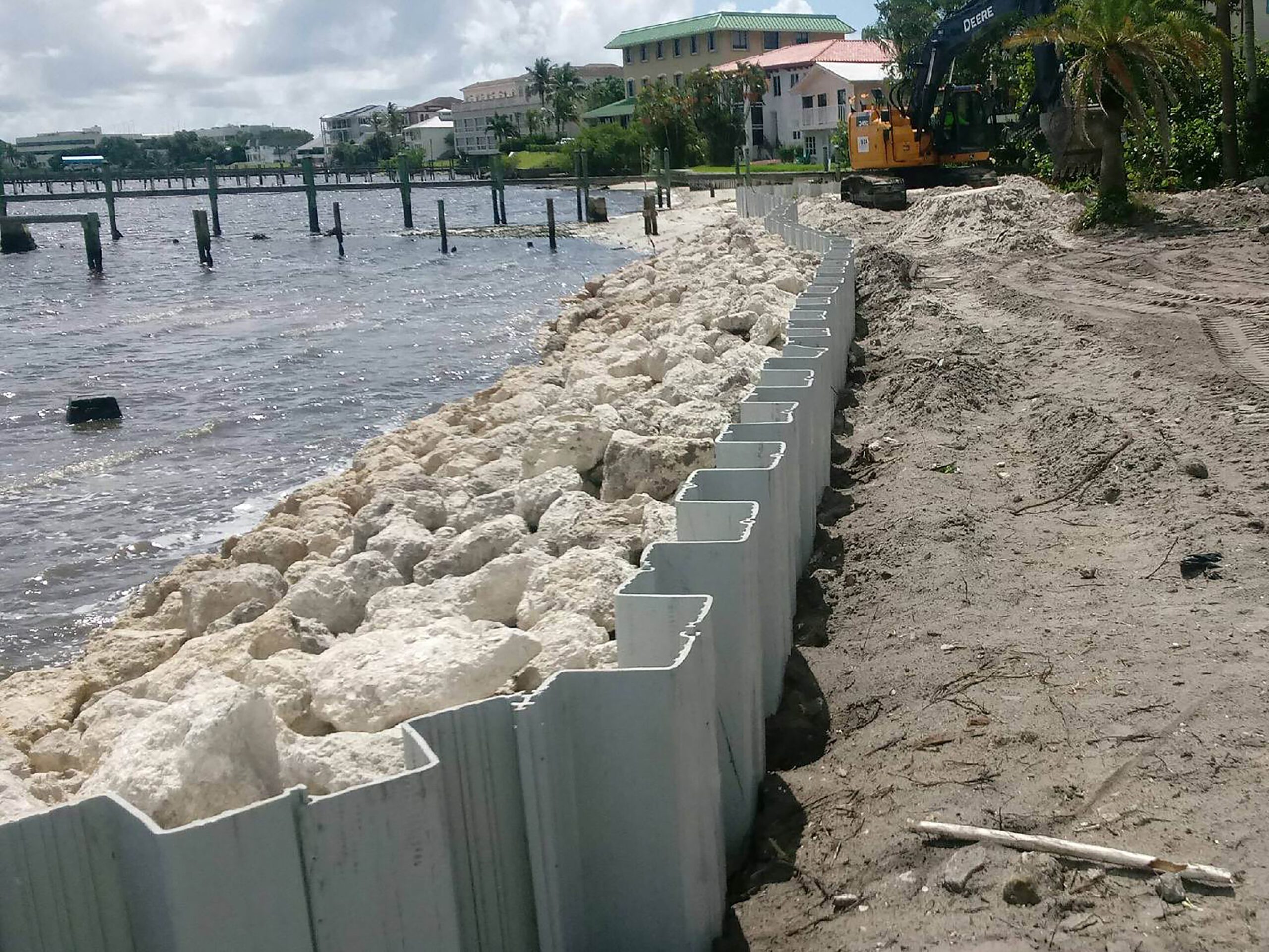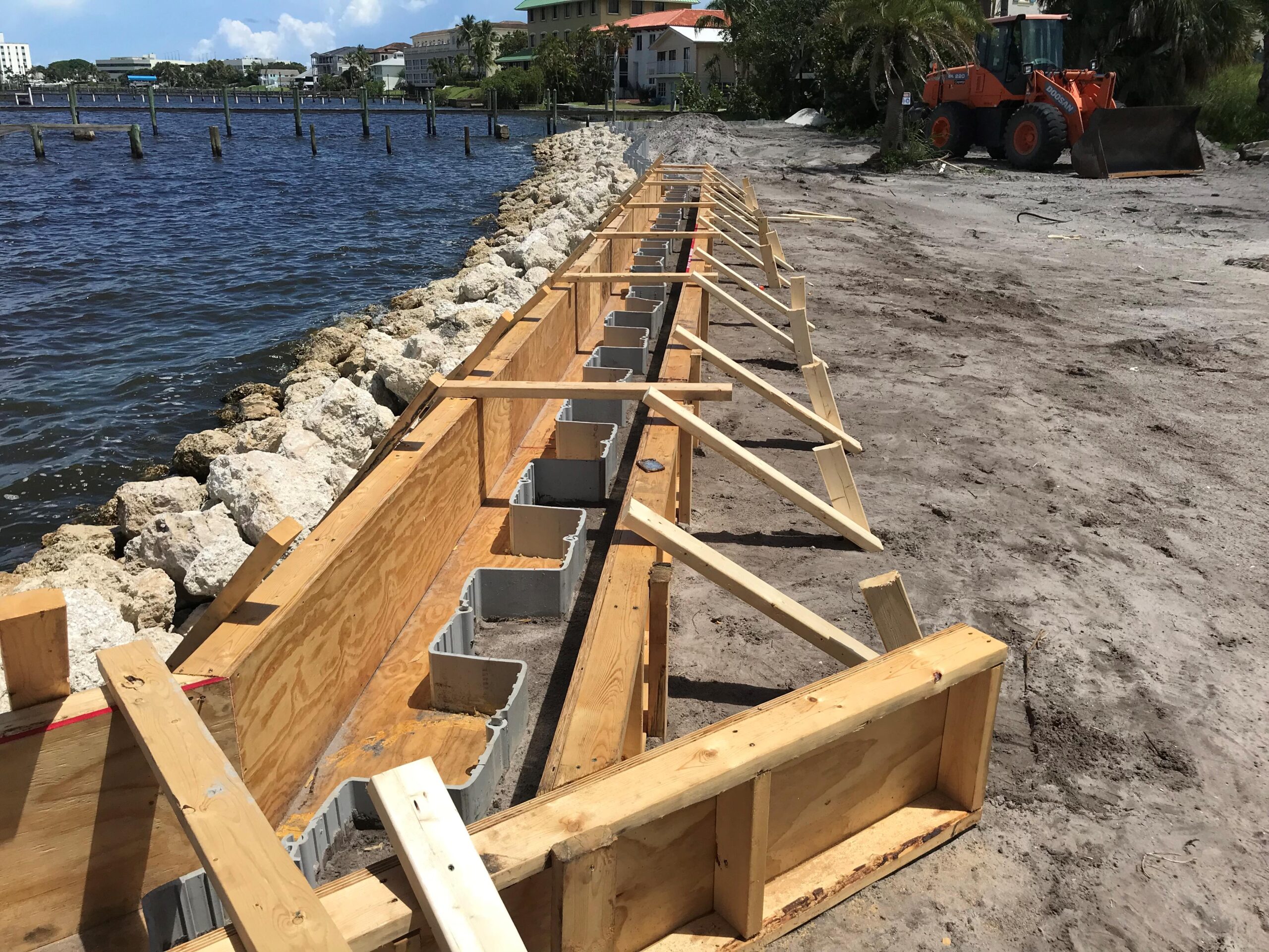 - Install 350 LF vinyl sheet pile wall with cast-in-place reinforced concrete cap
